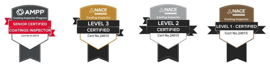 We have NACE Level 3 / AMPP Senior Certified Coating Inspector, NACE Level 2 / AMPP Certified Coating Inspector, and NACE Level 1 / Basic Coating Inspectors, in our team, all with various specialties.